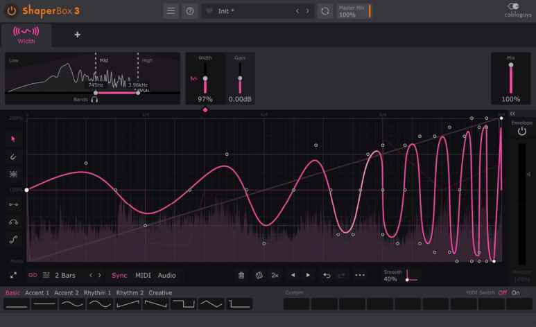 Cableguys Shaperbox, Miksaj sihirbazlığı yapacak ve müziğinizi harekete geçirerek en iyi ritimleri oluşturacaksınız. Yeni ses tetikleme özellikleri keşfedecek ve müziğinize ritmik veren efektler oluşturacaksınız. Karmaşık olan mixs sorunlarınızı kolayca çözecek ve mixsiniz de oluşmuş sorunlu unsurları kalıcı olarak silerek artık sorunsuz bir şekilde olmasını sağlayın.