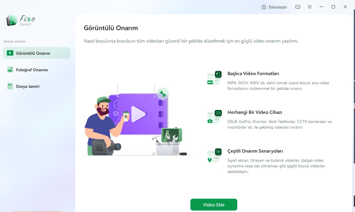 EaseUS Fixo,PDF Excel vb powerpoint dosyaları gibi Fotoğraf vede video gibi bozuk herşeyi onarıp açmanız için yapılmış