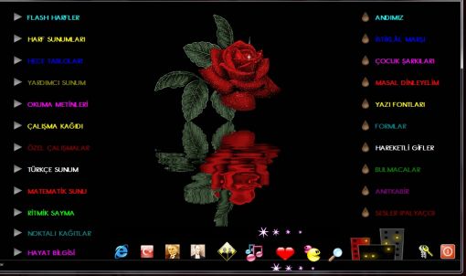 masallardan tutun,okuma yazma öğrenmeye boyamadan harfleri öğrenmeye kadar bir çok dersi içerir