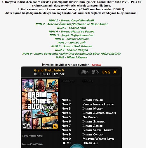 GTA 5 Native Trainer Hile yazılımı,ege arkadaşımızın önerdiği temiz gta5 mod hileleri