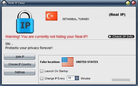 Hide IP Easy, ip gizleme programıdır, tedbirlerinizi aldıktan sonra dilediğiniz sitelerde güvenli dolaşmanıza