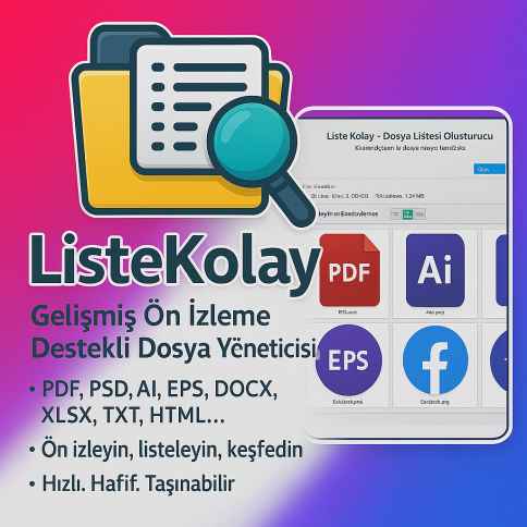 Easylister File List Generator İndir,kullanıcı dostu Yerli yapım tatabdullah nickli, arkadaşımızın geliştirdiği taşınabilir ve kurulumlu dosya düzenleme önizleme ve listeleme programı hızlı ve kolay, bol özelliklerini keşfederek kolay kullanım imkanı ile dosyalarınızı görün listeleyin. DESTEK VE İNDİRME LİNKİ