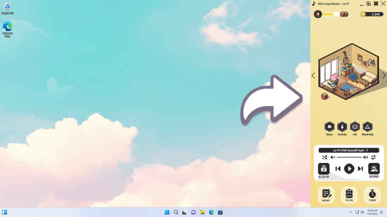 Mini Cozy Room Lo-Fi – All in One Bundle,2025 yapımlı oyunda Pixel olan odaları dekore etmek için görev alacak ve avatarlara eşlik ederek ayak uydurun. Yapılacaklar listesi oluşturun ve not defterine kaydedin. Daha sonrasında ise bunları teker teker uygulamaya başlayın. Yeni eşyalar kazanmak için kilitleri açın ve üretken olmaya özen gösterin. 150 ve üzeri müzik parçası içermekte ve 15 ve üzeri farklı ortam mevcuttur.