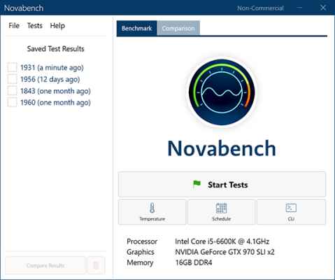 NovaBench İndir, Sistem donanmanızı ve grafik özelliklerinizi test etmek ve başka sistemlerle kendi özelliklerinizi karşılaştırabileceksiniz. NovaBench ile bilgisayarınızın ana bileşenlerini hızlıca test edebilecek ve 1-2 dakika içerisinde bilgisayarınızla ilgili tüm bilgilere ulaşabileceksiniz. Başka bilgisayarlarla kendi sistem bileşenlerinizi karşılaştırabilecek ve sisteminiz için bilinçli olarak yükseltme kararları verebileceksiniz.