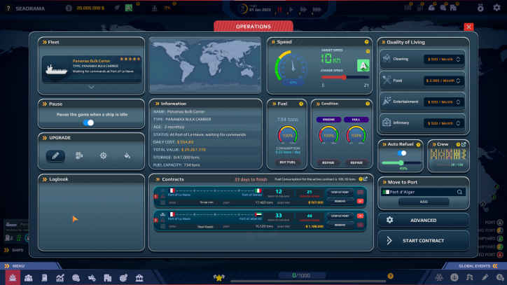 SeaOrama World of Shipping, 91’dan fazla liman içeren ve ticaret yapmanın yollarını planlamasını yapacağınız simulasyon strateji oyunudur. Kendinize ait nakliye şirketi kuracak ve girişimci olarak başlayacaksınız. Yatırımlarınızı ileri dönük bir şekilde yaparak mantıklı hameler yapın. Pazar trendlerini keşfederek analiz yapın ve jeopolitik olayları düşünerek rotanızı çizin. Müşteri bağlayın ve sözleşmeler yaparak kazançlı olmaya bakın. Aynı zamanda nakliye durumunuzu denetim yaparak işinizin titiz olmasına önem gösterin.