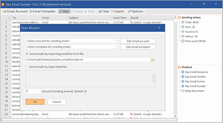 Sky Email Sender, txt ve csv formatındaki tüm maillerinize toplu mesaj veya bilgi reklam yada ürün tanıtımı için çeşit