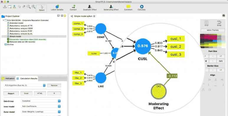 SmartPLS 2024,spss alternatifi Varyans tabanlı ve yapısal denklem özellikleri taşıyan modelleme oluşturma programıdır. Yapısal olarak eşitlik modellemesi destekleyen ve anatilik araçlar sunarak araştırmacıların analizlerini daha verimli bir şekilde olmasına imkan sunar. Böylelikle gizli yapılar, karmaşık yol modelleri, sağlam analitik yetenekler, denklem modellemesi gibi bir çok modelleme tasarlamanız mümkün. Ayrıca ön yükleme, çoklu grup analiz, gelişmiş görsel, ithalat ve ihracat gibi pek çok şey yapabilirsiniz.