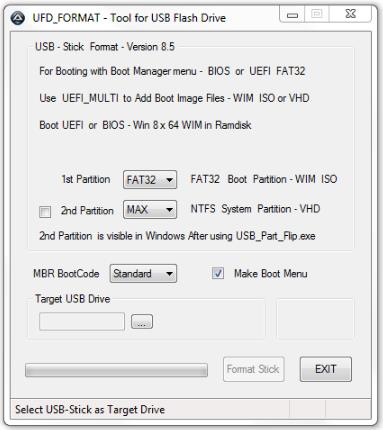 UFD Format, önyükleme yönetici menüsünü kullanarak UEFI + BIOS’ u USB’den doğrudan önyüklemek için sizlere kolaylık sağlayan ISO yazma programıdır.