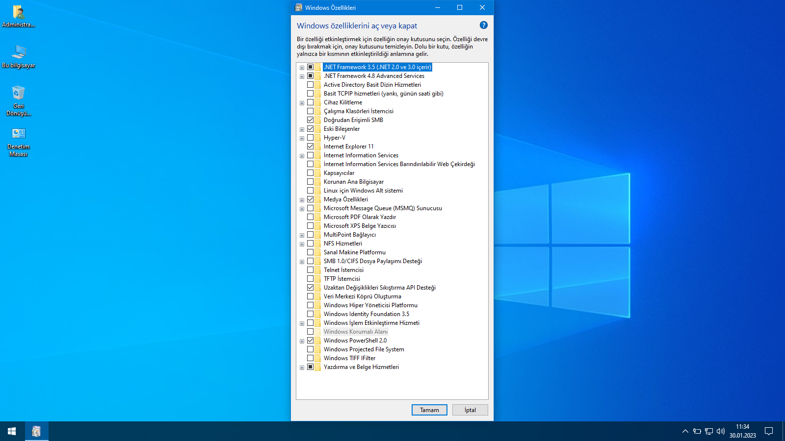 Net Framework: 3.5 Aktif | 4.8.1 Güncellemeleri Yüklüdür.