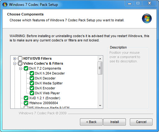 Windows 7 Codec Pack, windows 7 için codek programıdır açamadığınız video film müzik vb kalmasın