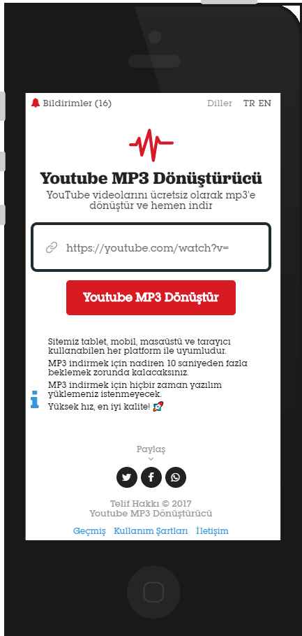 100% yerli olan bu web sitesinde reklam yok üstelik çok hızlı. Şimdilik uzun videolar indirilemiyor ve bazı videoları mp3’e dönüştürürken sorun yaşanabiliyor, onun için sitenin üst kısmında yer alan Bildirimler sekmesinden o video için yazılımcıların işlem yapıp yapmadığını görebiliyorsunuz.